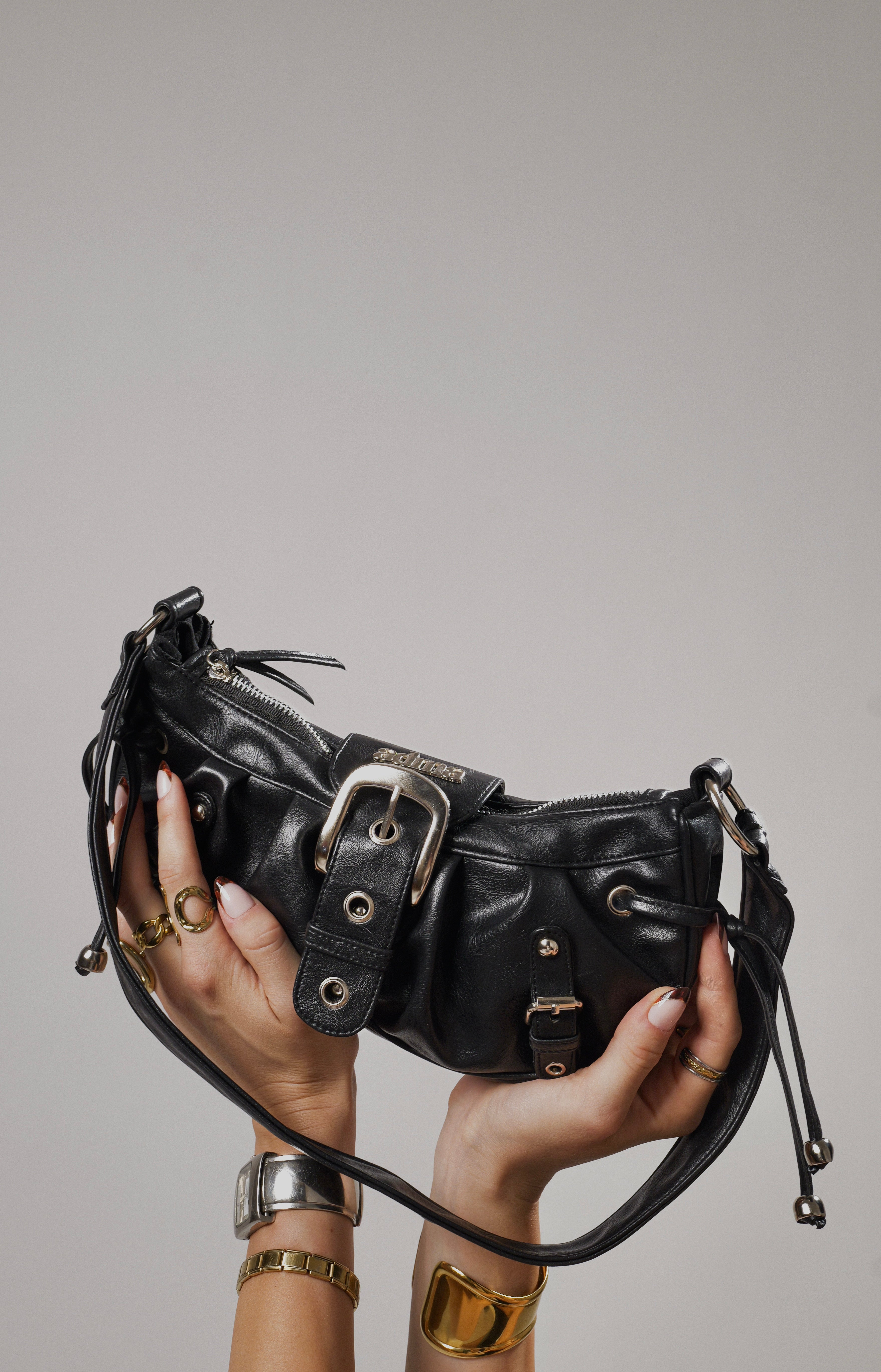 Un petit sac pratique qui réinvente la forme baguette en y ajoutant des détails forts plus rebelle, pour te suivre partout, sans t'encombrer, avec style et caractère !